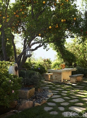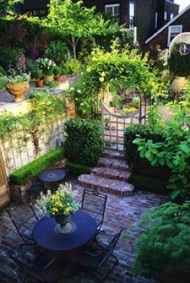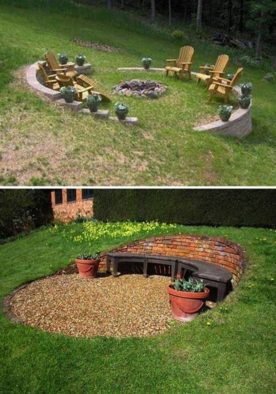 Next there would be an intermediate patio or courtyard to accommodate the daylight for the lower bedrooms. Maybe a couple chairs on this level and then reverse the steps down to the yard/garden level. Maybe a small table or picnic table could be place there. See pictures 5 & 6. I really have no ideas how to visualize this part of how much room would really be available. Both of these "intermediate patios" likely exceed the space we have available but I like the look of the stone picnic table.