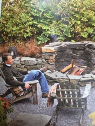 Finally as you transition to the back of the lot there may be plenty of room for a 2nd fire feature. Something simple like a fire pit or a fireplace. You could do a stone seat. I would think it should blend with the nature rock of the area and have a less structured look. You could look down into the valley a bit that runs on the North East side of the lot. I could see it being the "Scotch & Smores" pit. See picture 7-10 below.
